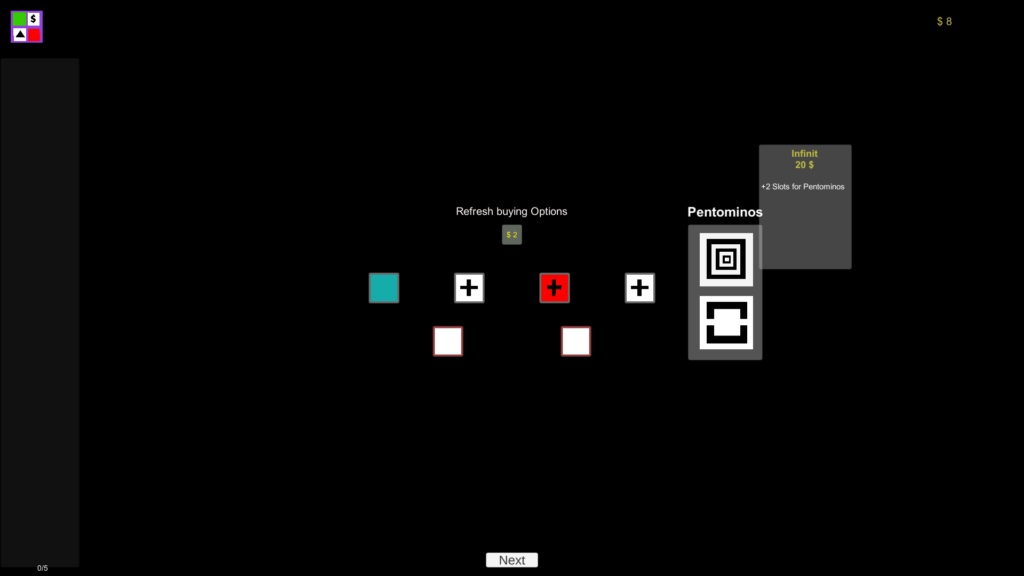 It is a game like Balatro with jokers (called Pentominos, to fit the setting) and customisation of the deck. In my case the tiles you place to create Pentominos.